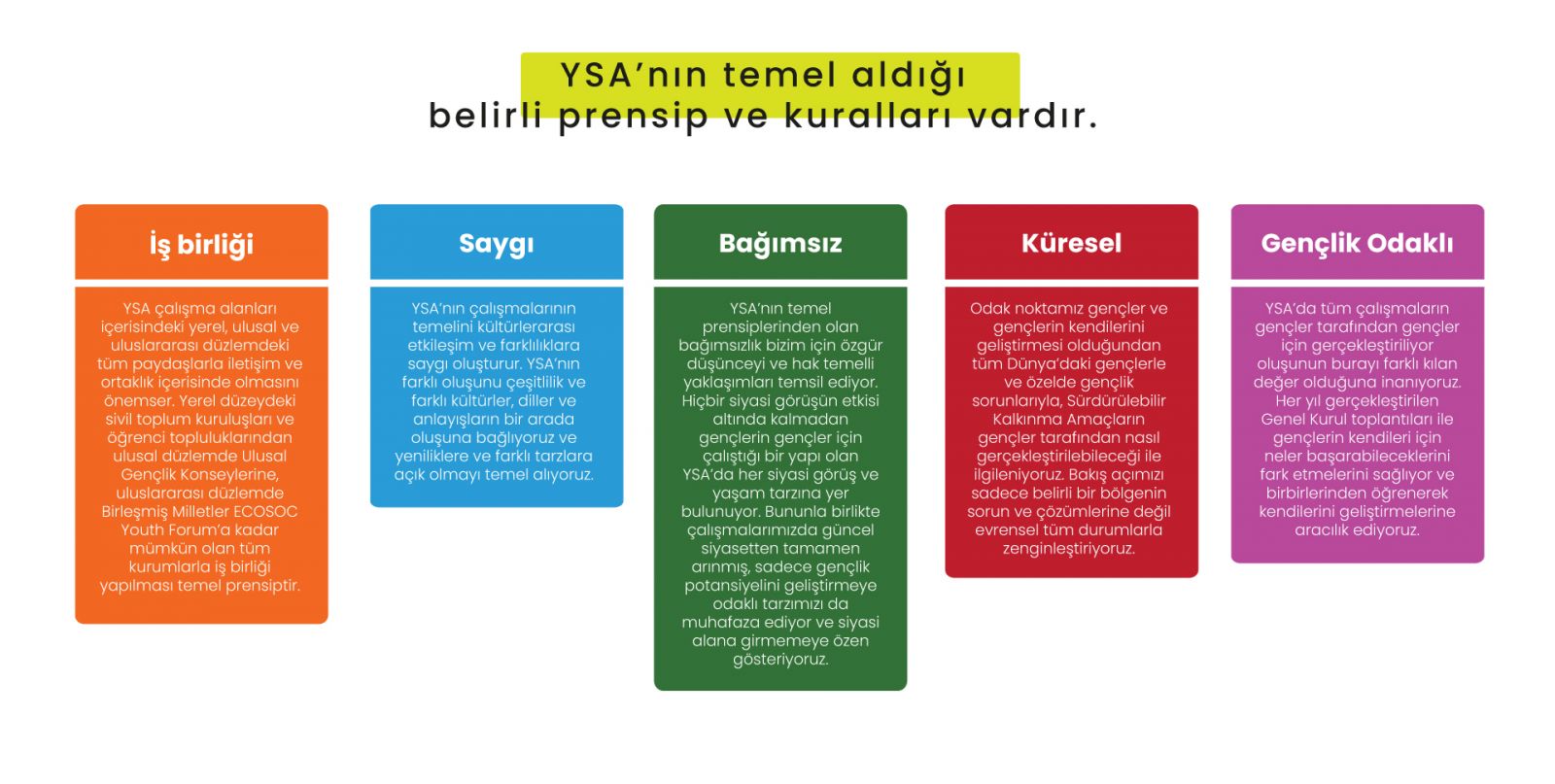 YSA’nın faaliyetlerini gerçekleştirirken temel aldığı belirli prensip ve kuralları vardır.